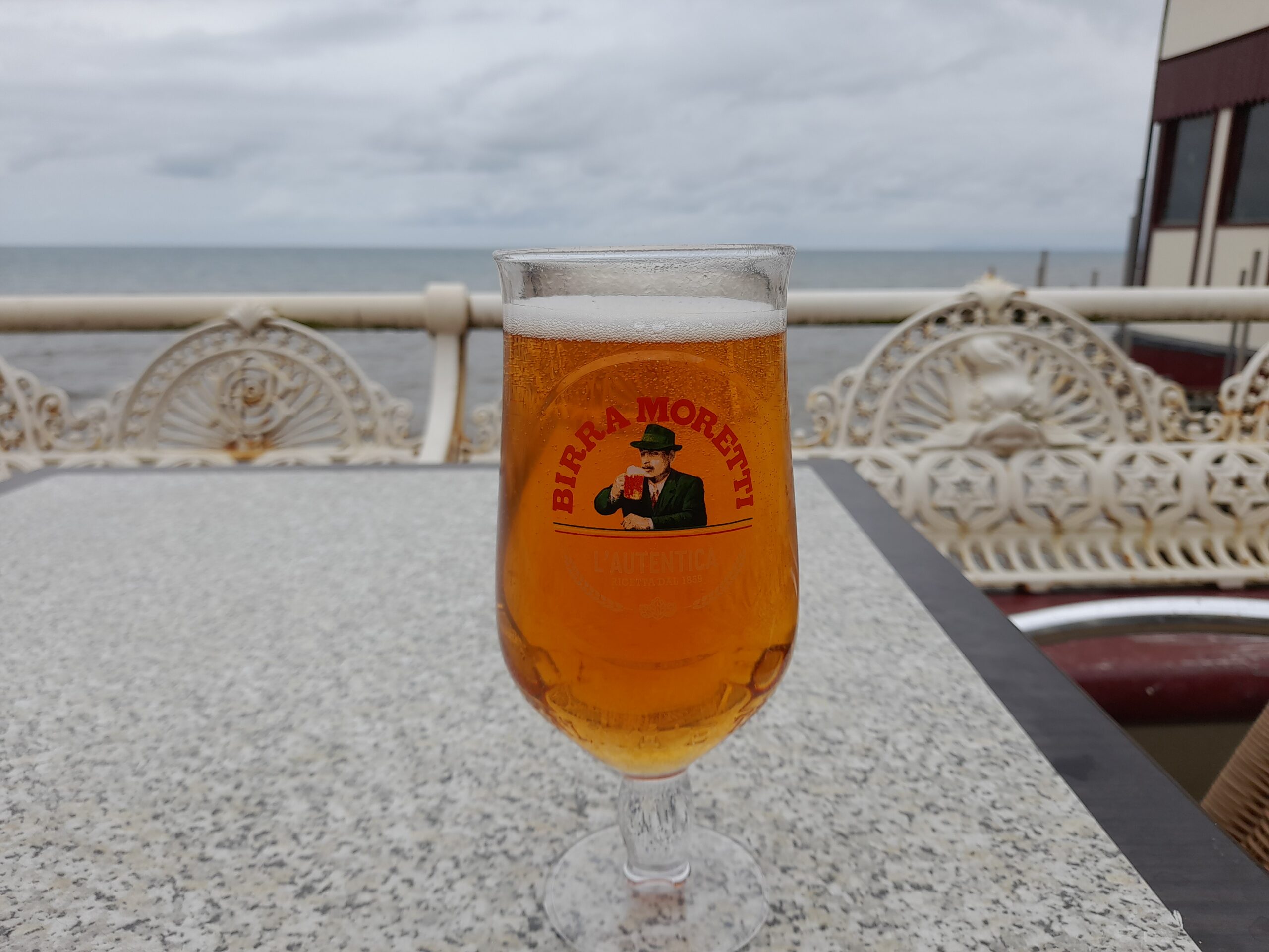Heute begleitet uns ein leichter Nieselregen zum Strand. Allerdings müssen Traditionen gewahrt werden und das Frühstück wird lediglich etwas schneller als gewohnt verspeist. Anschließend geht es noch ein letztes Mal zum Café am North Pier. Dort ist heute ziemlich tote Hose. Allgemein sieht man schon viele Punks heute Vormittag abreisen.