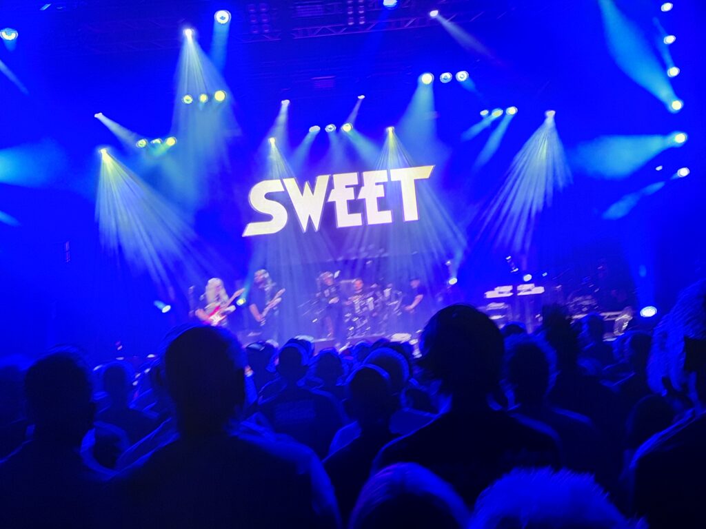 Als wir zurück in den Flur vom „Garden“ kommen, hat sich bereits eine massive Schlange für den Ballroom gebildet. Das hätte uns schon stutzig machen sollen. Wir kommen grade noch rein. Allerdings ist gefühlt kaum noch Platz zum stehen, geschweige denn Luft zum Atmen. The Sweet sind eine Glam Rock Band aus den 80er Jahren von der ich zuvor noch nichts gehört hatte. Meine Mutter schon. Sollte sich als kein Verlust herausstellen.