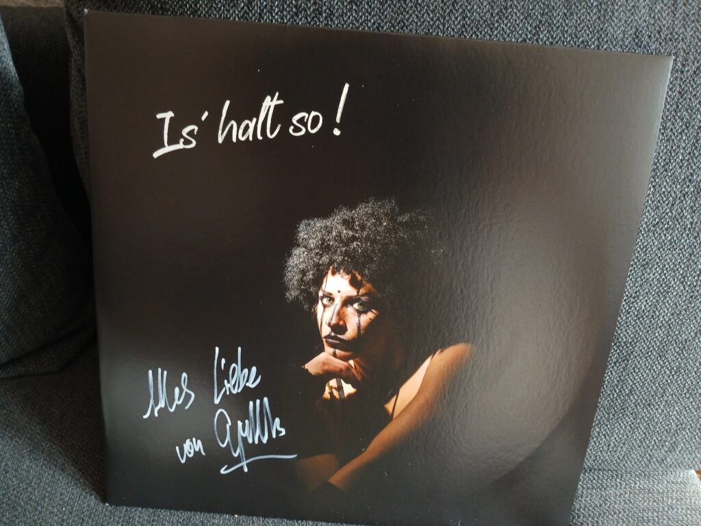 In der Pause verkaufen sowohl Götz, als auch Cynthia von der Bühne aus Schallplatten und anderen Merch. Publikumsnähe wurde beim Herr Widmann schon immer groß geschrieben und Frau Nikschas ist da scheinbar nicht anders. Absolut erfrischend und schön zu sehen, gerade in Zeiten wie diesen.