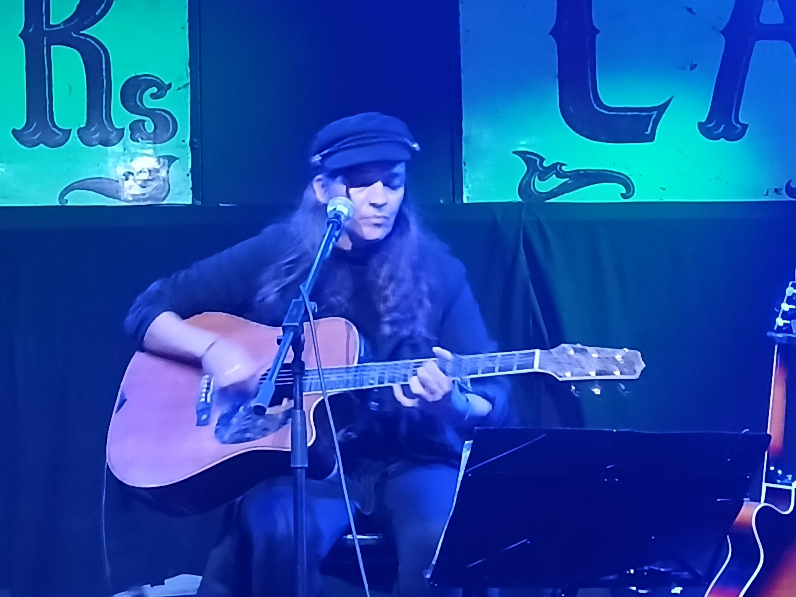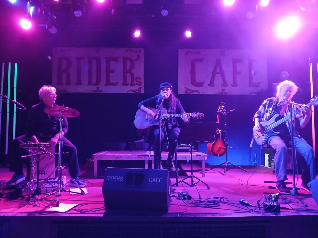 Allerding habe ich nun diese Kombination aus dem Band Urgesteinen Kai (am Bass) & Funky (ehemals Drummer, jetzt Cajón und Percussion) mit anderem Sänger (bzw. hier anderen Sängerin) nun schon seid einige Jahren (bzw. Konzerten) verfolgen dürfen. Einige Jahre hatten sie als Sänger den Nürnberger Gymmick am Start. In dieser Variante von Ton Steine Scherben durfte ich in Locations wie dem Logo in Hamburg oder eben den Riders Cafe in Lübeck sehr viel gute Konzerte erleben. Gymmick hat seine eigene Note eingebracht, ohne die alten Songs in irgendeiner Form zu verraten. Zudem war er stimmlich durchaus dicht an Rio dran und hat die Songs mit viel Herz rübergebracht. Daher war es schade von seinem Ausstieg zu hören.
