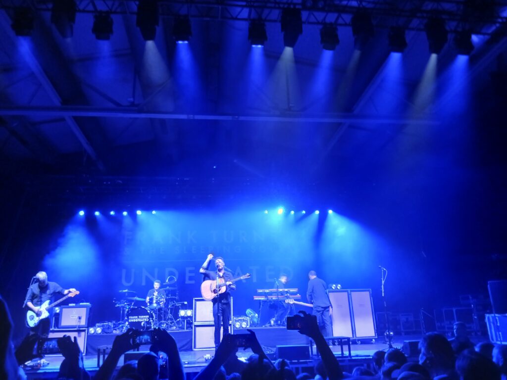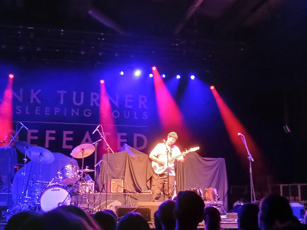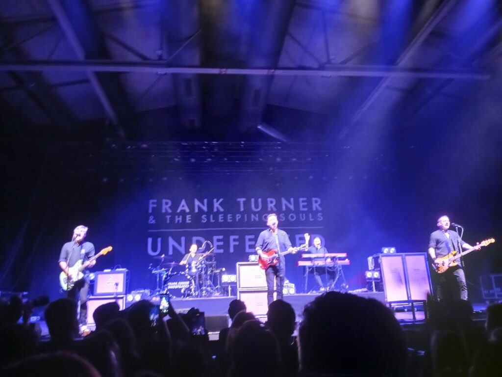 Gegen 21:15 Uhr betritt der Main Act Frank Turner die Bühne mit dem Song No thank you for the Music, vom neuen Album Undefeated. Danach kommt mit 1933 direkt ein etwas älterer Song mit klarer Haltung gegen Faschismus.