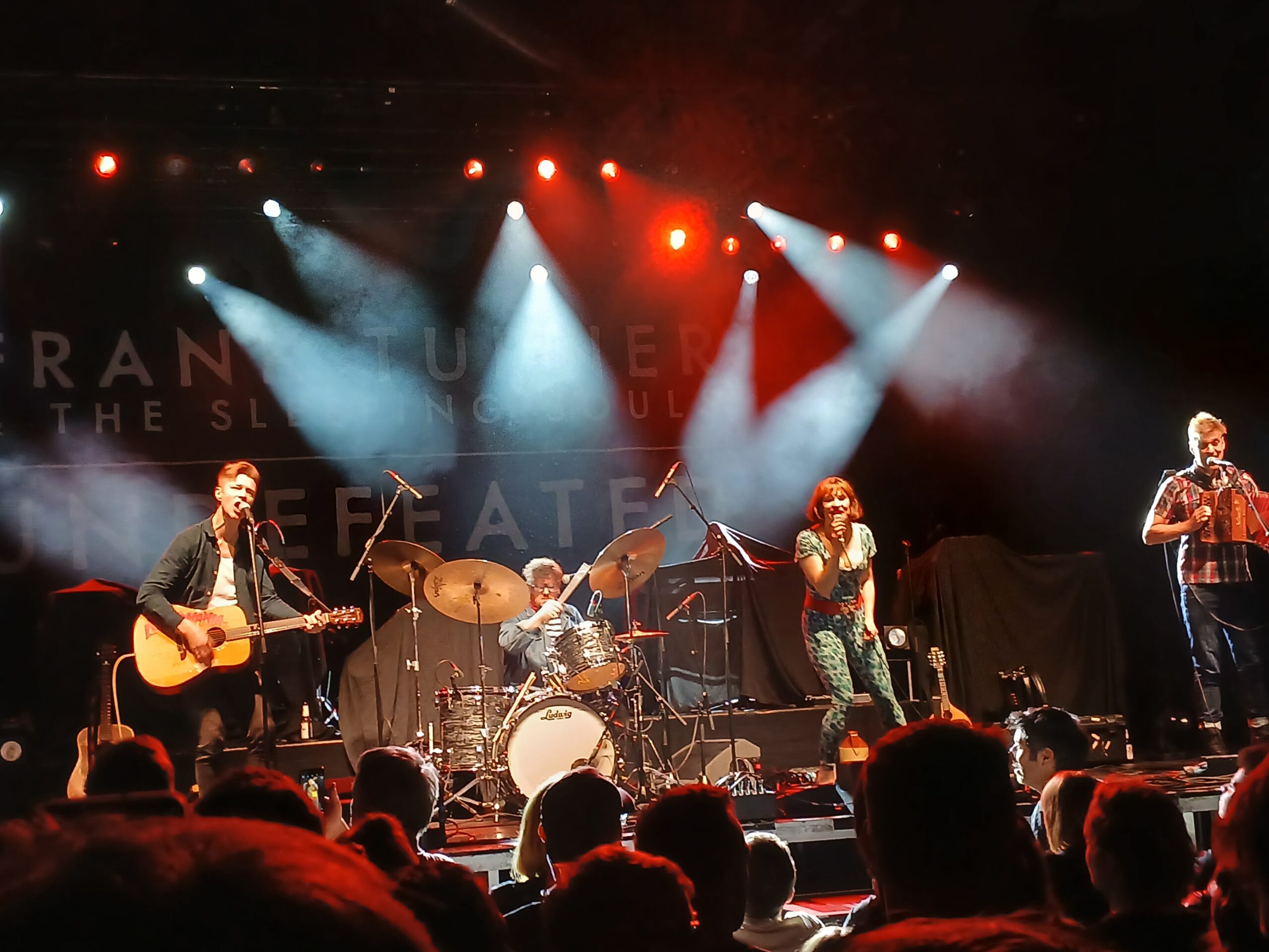 Die Musik ist sehr tanzbar und musikalisch durchaus anspruchsvoll. Man könnten auch sagen, ganz in der Tradition der Pogues – was absolut als Kompliment gemeint ist. Thematisch geht es hauptsächlich um die gute alte Kneipenkultur und wie fast immer auch um die Liebe. Die Sängerin Lorna ist eine absolute Rampensau, die keine Gelegenheit auslässt ins Publikum zu gehen. Zum Song Arm Wrestling in Dresden ist es dann auch soweit. Lorna kommt ins Publikum und macht mit mutigen freiwilligen Armdrücken vor der Bühne. Die Leute sind strahlen :). Dann wird – wie bei jeder Skinny Lister Show – noch ein riesiger Krug mit Alkohol im Publikum herum gereicht. Gut 45 Minuten geht das Set und zum Abschluss wird es nochmal richtig wild mit Trouble on Oxford Street. Der perfekter Song für eine Eskalation zum Abschluss.