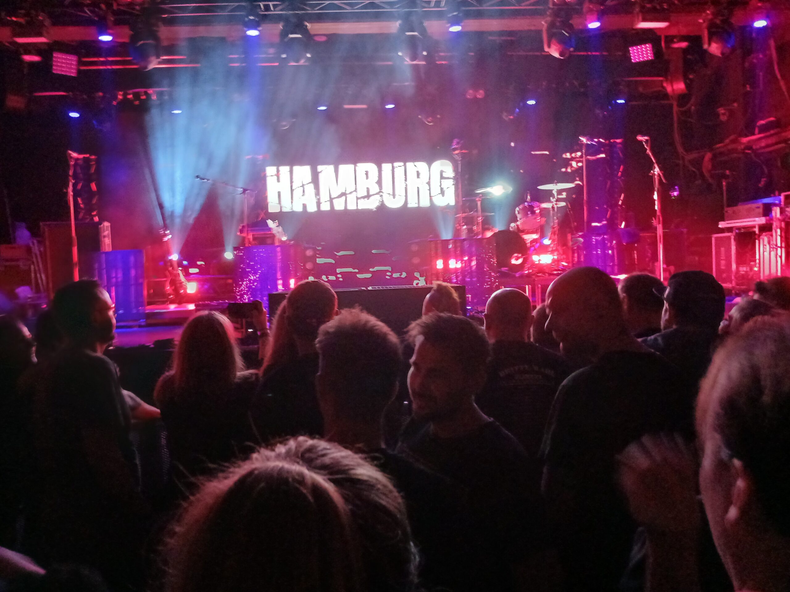Wir sind pünktlich um 18 Uhr zum Einlass da. Das lohnt sich in der Großen Freiheit grade bei ausverkauftem Haus immer, da man ansonsten aufgrund der Wartezeiten an der Garderobe durchaus Gefahr läuft, den Anfang vom Konzert zu verpassen. Ein weiterer Trick, den ich sehr empfehlen kann, ist, ein Shirt von der Band direkt beim Reingehen zu kaufen und es anschließend in die Jackentasche zu quetschen. So muss man sich hinterher nur an einer Schlange anstellen und man muss das (potenzielle) neue Lieblingsshirt nicht im schlimmsten Falle in der Größe „Presswurst“ kaufen. XL Shirts sind meinen Erfahrungen nach bei Punkkonzerten oft relativ schnell ausverkauft. Naja, wir leben halt gut :). Für uns läuft es prima. 19 Uhr soll die Musik starten und schon 18:30 stehe ich im T-Shirt und mit Bier vor der Bühne. Da bleibt noch genug Zeit für einen Plausch mit den Kollegen.