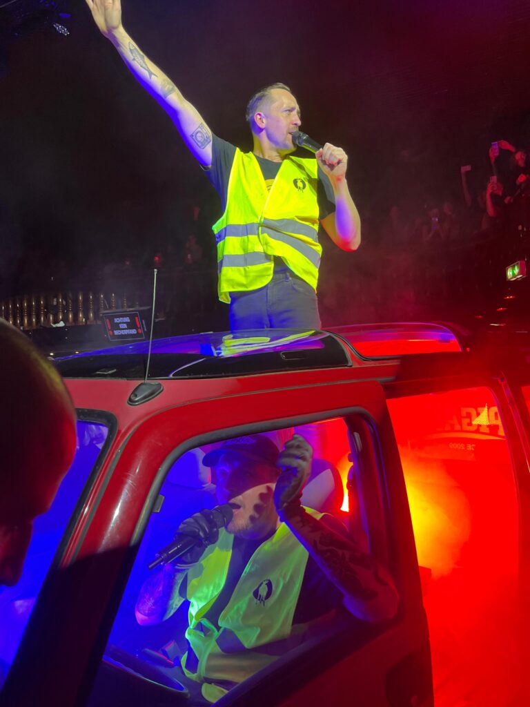 Es werden viele Songs vom neuen Doppel-Album gespielt. Dieses umfasst eine reine Rap Seite und eine Punk Rock Seite. Besonders die Punk Rock Songs wie „Oberbürgermeister“, „American Fitness am Hermannplatz“ oder „Muttertag“ funktionieren live ziemlich gut. Trotzdem hätte ich mir (in guter alter Punk Manier) insgesamt ein paar mehr ältere Songs im Set gewünscht.