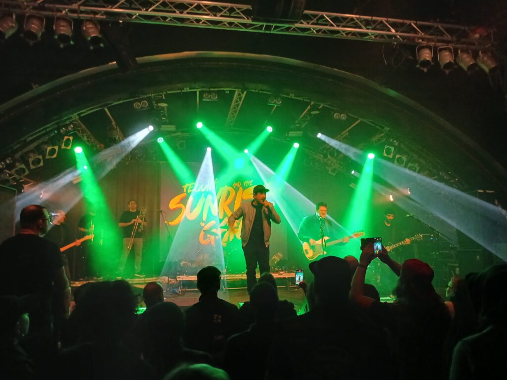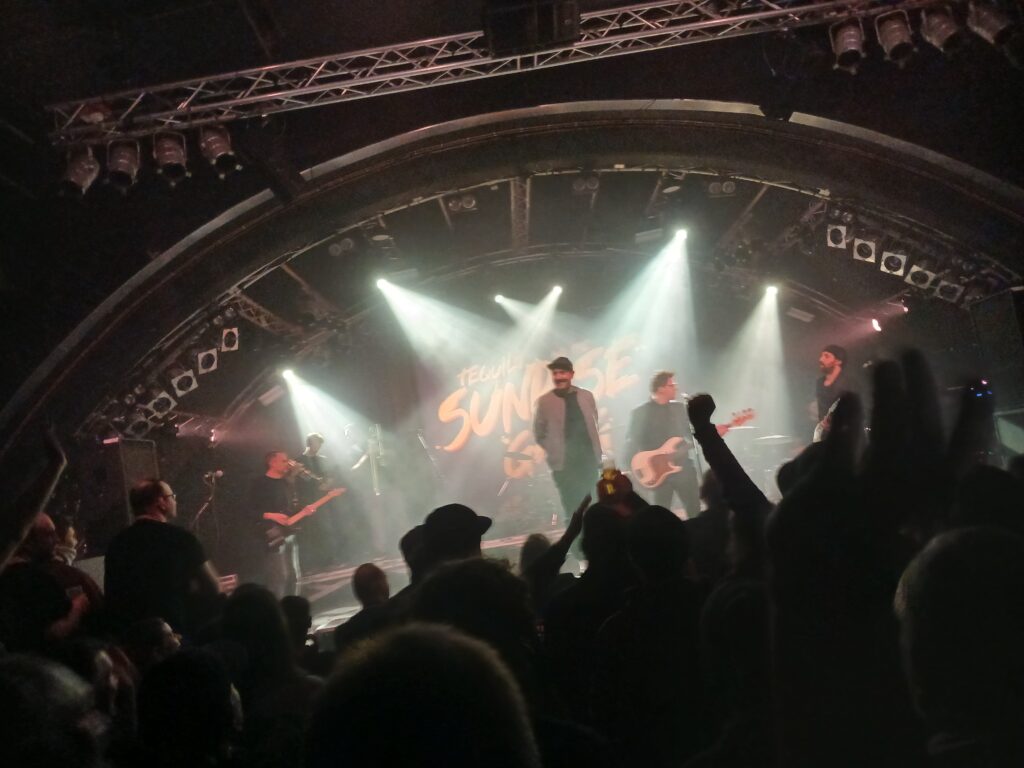 Die Kieler legen, wie man es von ihnen gewohnt ist, los wie die Feuerwehr. Viele Leute im Publikum kennen sie und können die Texte mitsingen. Für alle, die sie noch nicht gesehen haben, die Sunrise Gang spielt einen wilden Mix aus Ska-Punk, Rock und Reggae. Ausgestattet mit Gitarrist Malte Buchholz, Schlagzeuger Marvin Thode, Bassist Lukas Hartung, Felix Konradt an der Posaune und Johannes Poser an der Trompete, komplettiert das ganze Sänger René, mit viel Energie und Bewegung, gepaart mit einer sehr sanften Stimme, die aber auch mal ordentlich schreien kann.
