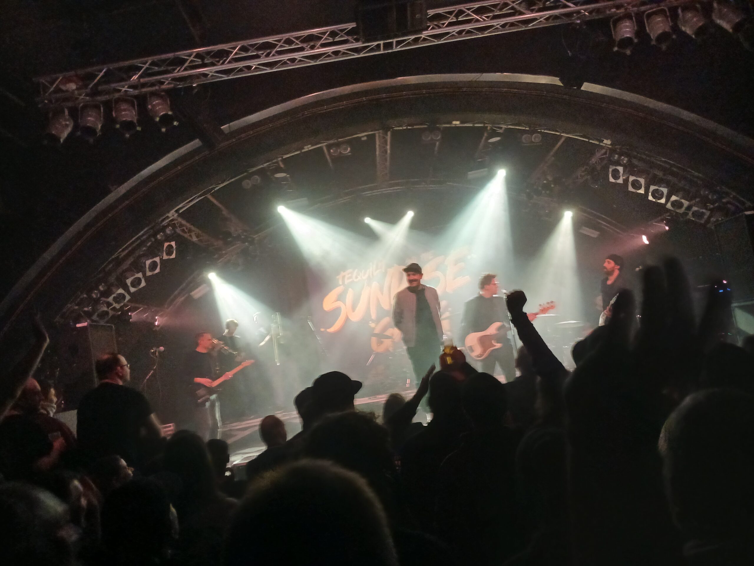 Wir bleiben noch etwas in der Location, da die Garderobenschlange in der Markthalle über einen Balkon nach unten führt, der (wie der Namen vermuten lässt) draußen ist. Draußen sind inzwischen Minusgrade. Also erstmal Wasser, Bier und das Konzert mit den Freunden Revue passieren lassen. Alle sind begeistert. Nur mein Freund mit den fehlenden Ticket fand Tequila and the Sunrise Gang besser als die Hauptband.