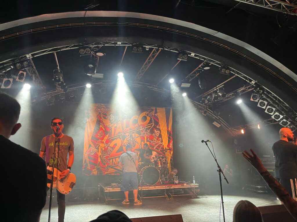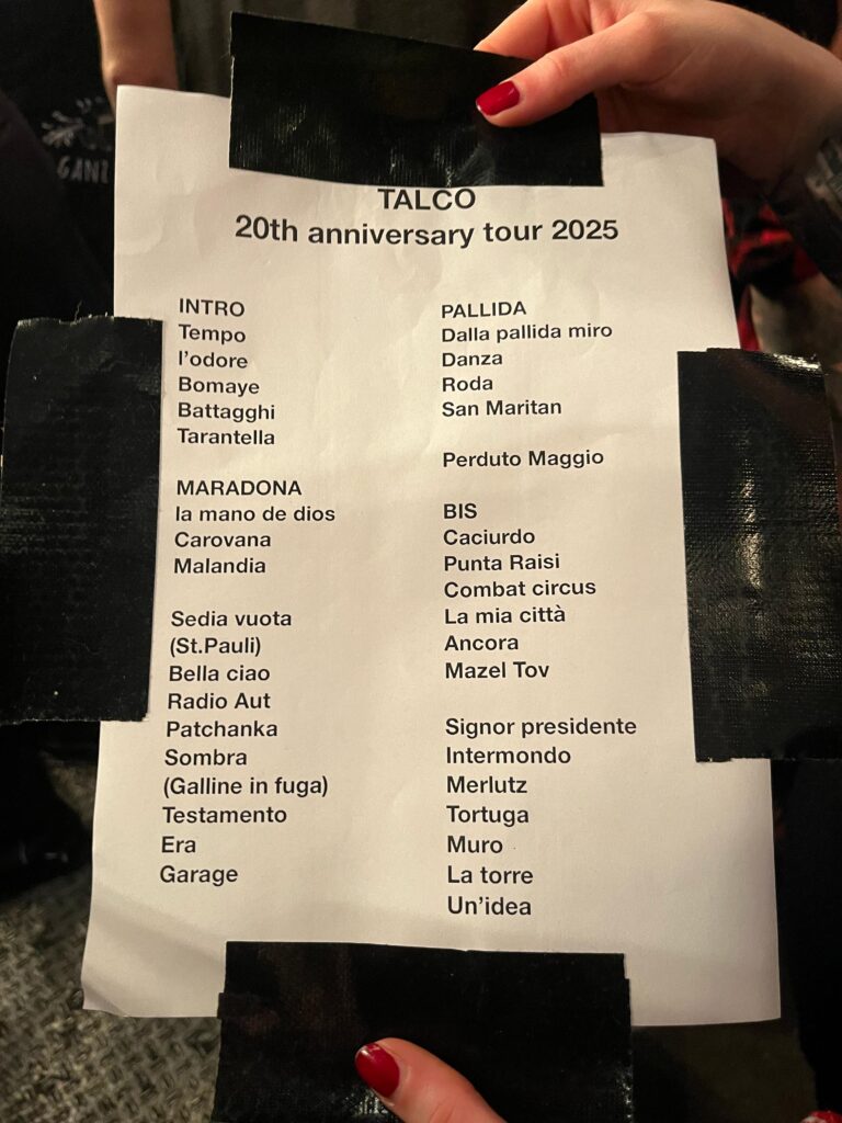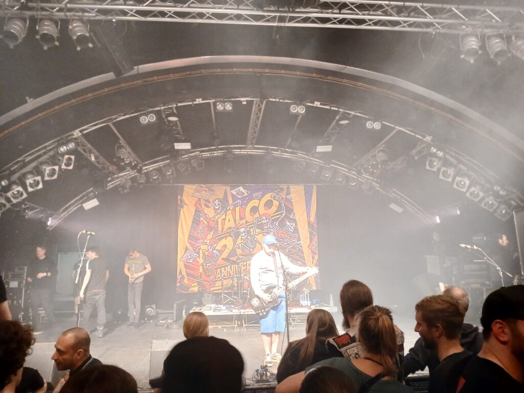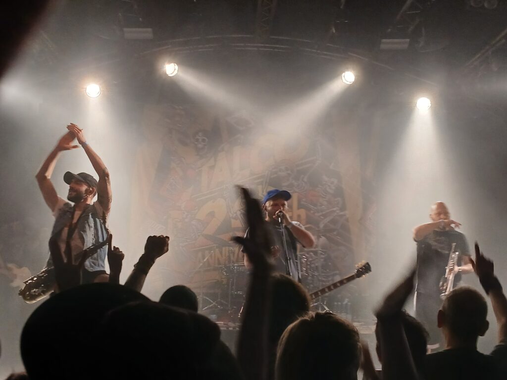 Anschließend geht es direkt mit dem natürlich weltbekannten Bella Ciao weiter. Ein Song, der besonders jüngeren Menschen möglicherweis nur noch durch irgendwelche unsäglichen Techno Remixe bekannt ist, die in meinen Augen auf die original Message für Geld bewusst spucken. Zu Talco hingegen passt diese Hymne der italienischen Partisanen, gesungen gegen die faschistische Mussolini Regierung im zweiten Weltkrieg, perfekt. Man nimmt ihnen jedes Wort ab und sie untermalen das ganze mit ihrem mächtigen Sound. Ein Sound der den ganzen Abend förmlich „Revolution“ zu schreien scheint. Nicht zuletzt, auch auf Grund der aktuellen Lage in Italien, mit der rechten Regierung von Meloni. Allerdings auch für uns in Deutschland, in Bezug auf die Gefahr, demnächst eine ähnliche Regierung zu haben. Man will die Faust gar nicht mehr senken!
