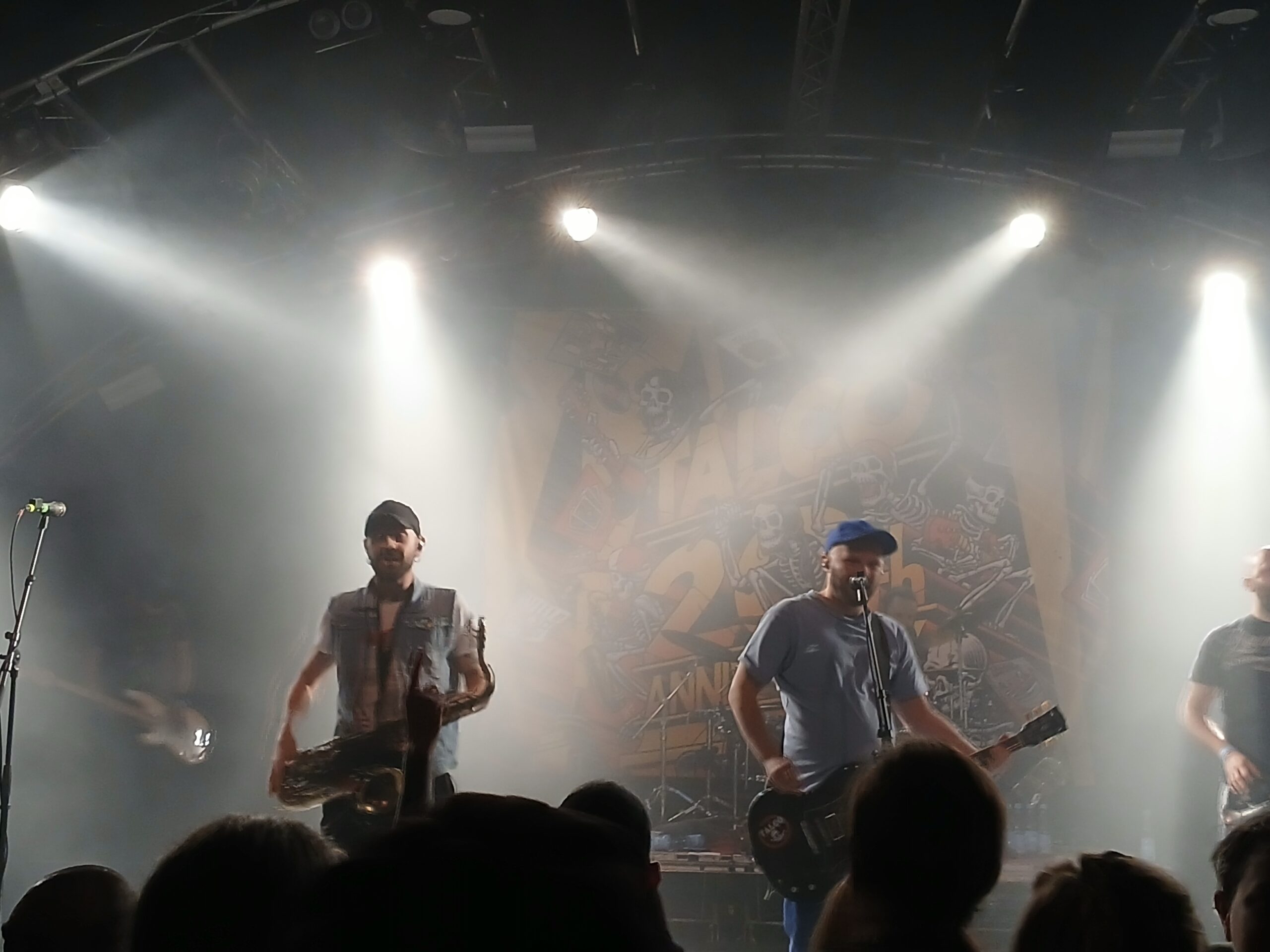 Tja und dann war ich sofort völlig begeistert. Talco schaffen es, sowohl an dem beschriebenen Rodeo-Abend als auch heute, mich musikalisch komplett umzuhauen. Der Trompeter macht einen unglaublich guten Job. Gefühlt kenne ich keine Band, bei welcher der Sound dieses Instruments druckvoller und präsenter wäre. Allgemein wirkt der ganze Sound sehr musikalisch und tanzbar. Ihre Herkunft merkt man den Jungs ebenfalls an, denn teilweise sind klar erkennbare Einflüsse von italienischer Volksmusik zu erkennen. Auch Balkansounds sind – gefühlt zumindest – enthalten. Zudem ist die Musik super schnell, perfekt zum Pogo. Auch der Moshpit ist heute hart, aber absolut nicht bösartig. Es ist für mich schon immer eine Art Gradmesser, was für ein Publikum eine Band anzieht. Das heutige beherrscht den „Schubsetanz“ sehr gut, hilft Menschen am Boden, lächelt sich gegenseitig an und klopft sich auch öfter mal auf die Schulter. Dafür eine Runde Applaus meiner Seite. Trotzdem sollte mein Rücken am Ende ziemlich die Schnauze voll haben.