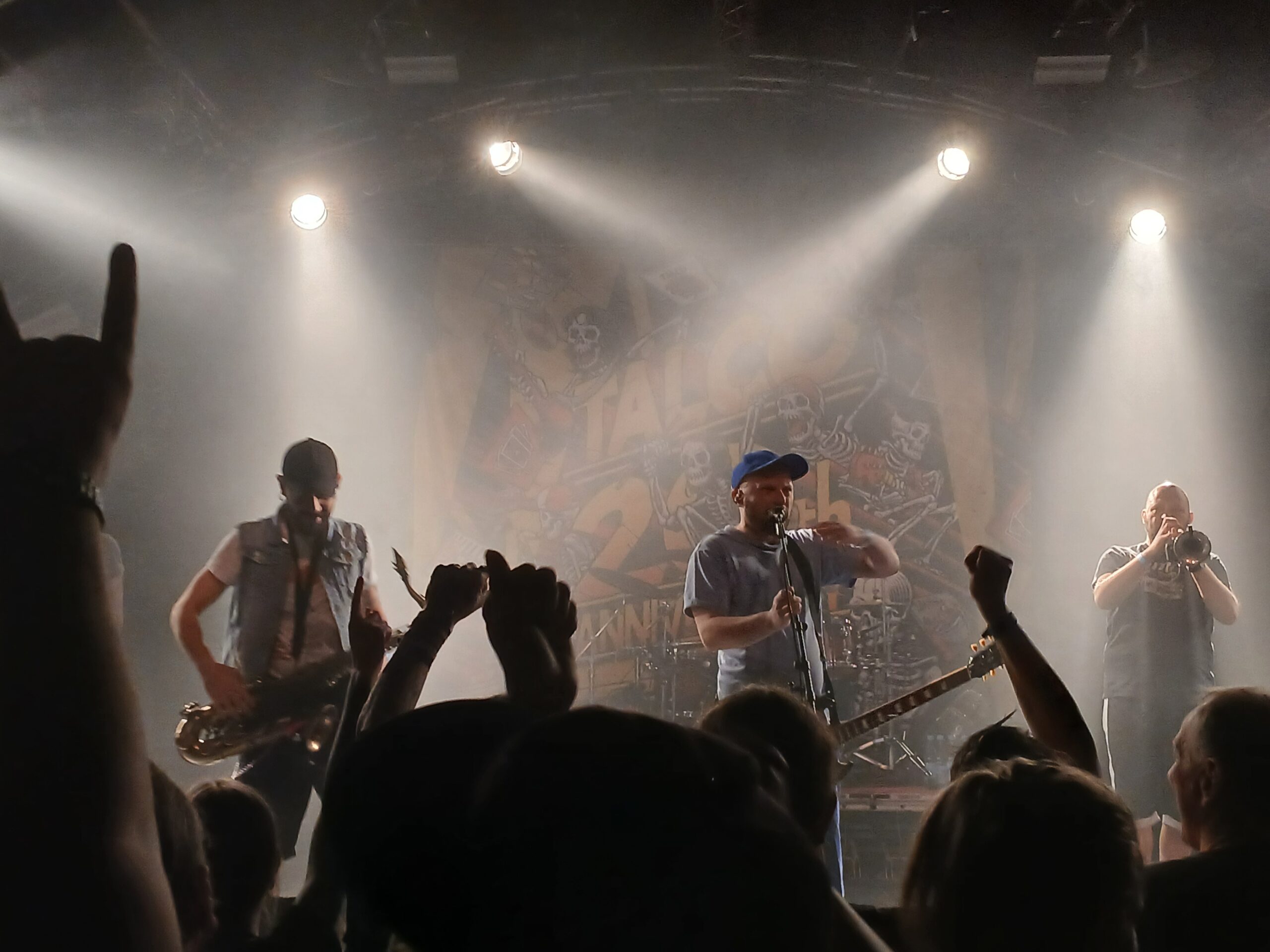 Als ersten Song spielen sie mit Under Pressure direkt meinen Lieblingssong vom aktuelle Album Home. Also schnell das Bier austrinken und rein ins Getümmel. Ein sanfter Moshpit der „Bandkenner“ formiert sich dann auch unten in der Mitte. Neben ihren eigenen Songs spielen sie im weiteren Verlauf, wie in letzter Zeit häufig, auch ein Cover vom schon fast legendären Danger Dan-Song Das ist alles von der Kunstfreiheit gedeckt. Im Original wird das Stück ja nur durch das Piano begleitet. Besonders durch die Trompeten bekommt diese Version hier nochmal einen ganz neuen Touch und macht den Song tanzbar.