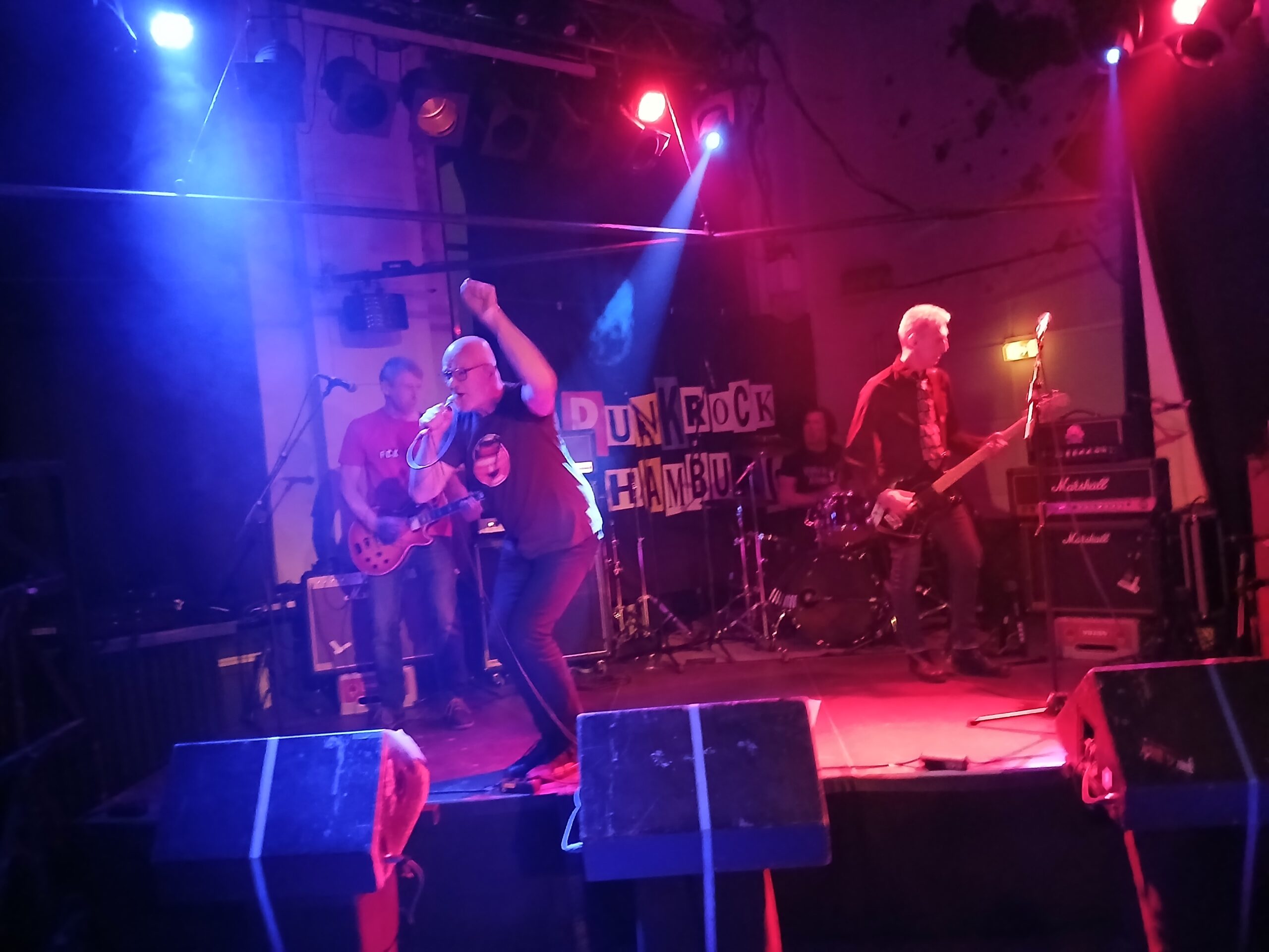 Gegen 20 Uhr geht es quasi mit den „Hometown Heroes“ los. Die Jungs von Blanker Hohn kommen nämlich direkt aus Harburg. Bereits 1983 wurde die Band ursprünglich gegründet. Wie bei so vielen Punkbands war es allerdings oft eine „on and off Beziehung“. Bereits 3 Mal haben sich die Jungs wieder vereinigt. Zuletzt im April 2018. Mehr dazu könnt ihr in unserem Artikel lesen. Durch diesen hab ich die Band wiederum kennengelernt.