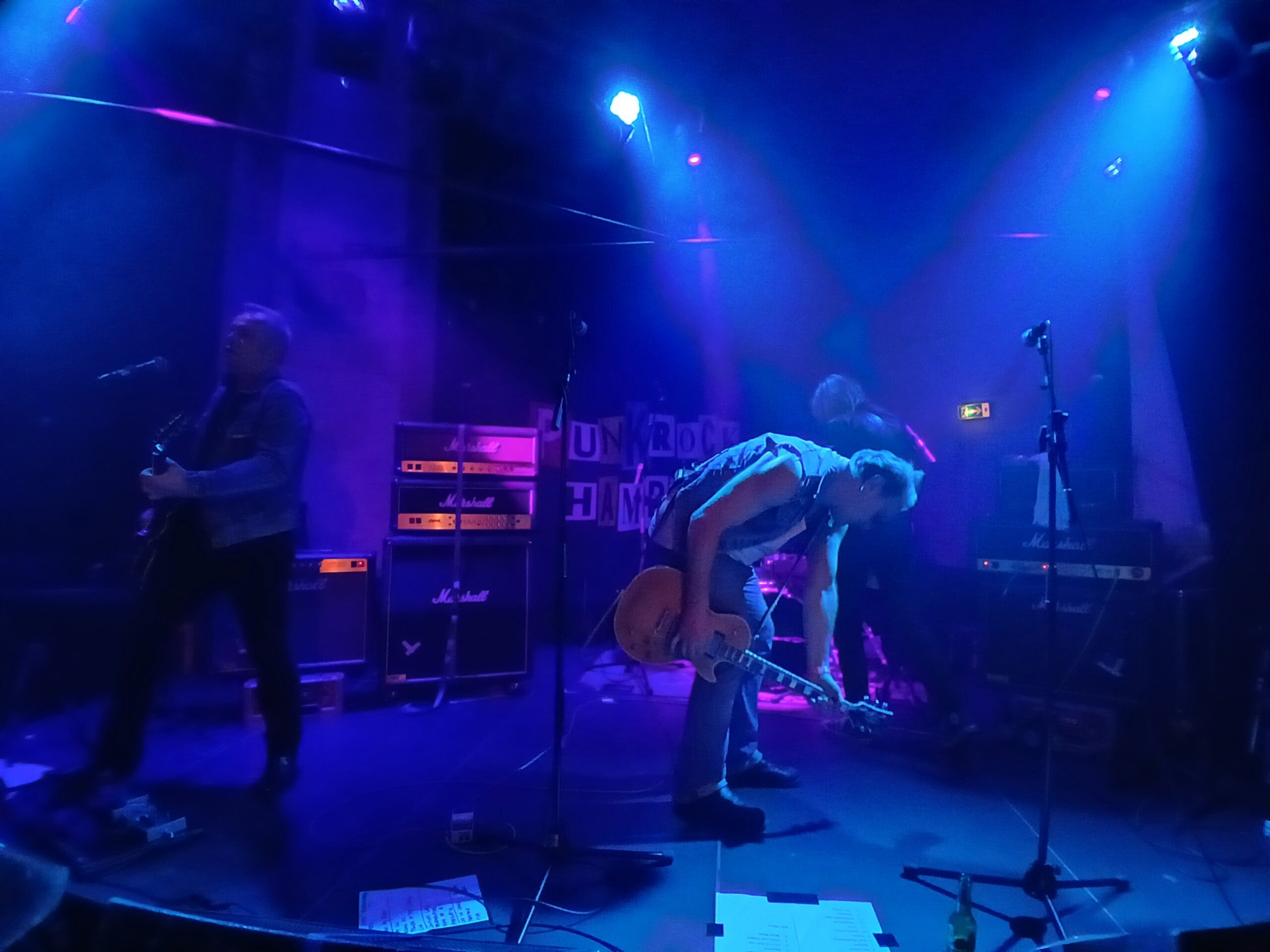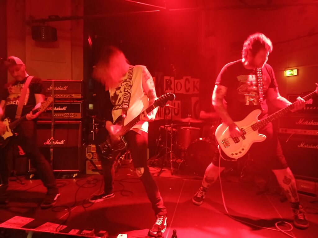 Als letzte Band wird uns nun noch diese 70er Jahre Glam, Punk und Trash Coverband aus Hamburg Horn serviert. Die Band besteht aus 3 Männern und endlich auch mal einer Frau. Meine Kenntnisse über Songs dieser Art, aus diesem Jahrzehnt sind eher beschränkt, daher kenne ich die meisten Songs leider nicht. Zudem rächt sich inzwischen ein bisschen der lange Tag. Die Nebel des Alkohols werden dichter und ich auch. Insofern ist die Erinnerung ab diesem Punkt etwas getrübt.