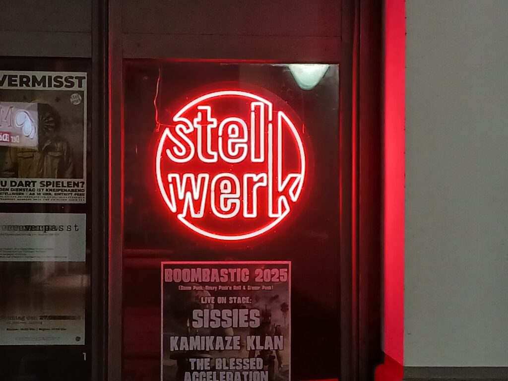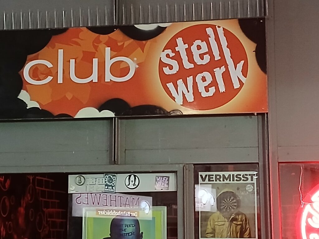 Ich bin also zum ersten Mal im Stellwerk und direkt äußerst angetan von der Location. Sie verstrahlt ein charmantes Industrieflair und ist ziemlich klein. Laut Recherche passen bis zu 199 Personen rein. Der Laden ist heute ausverkauft. Allerdings sehr „human ausverkauft“, man kann sich noch prima bewegen und fühlt sich nicht wie in einer Sardinenbüchse. Die Mitarbeiterinnen und Mitarbeiter sind total freundlich und es gibt eine schicke Bar.