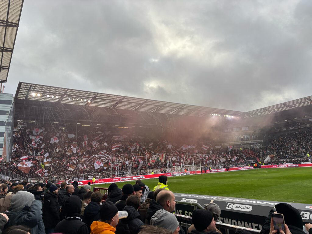 Nach knapp 2 Stunden stehen auf der Tribüne geht es dann endlich los und die Spieler betreten zu den Klängen von „Hells Bells“ von „AC/DC“ den Platz. Für mich jedes Mal ein absoluter Gänsehautmoment. Überall um mich herum fliegt Konfetti und das Adrenalin kickt richtig rein. In der ersten Halbzeit schlagen sich die Kiezkicker wacker und erkämpfen ein 0:0 Zur Halbzeit. In der zweiten Hälfte lassen sie dann leider deutlich nach und Dortmund gewinnt am Ende mit 2:0.
