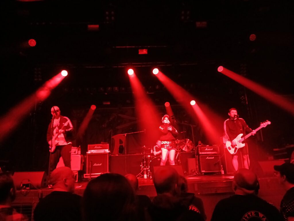 Als ich mit der Garderoben Marke in den eigentlichen Konzertsaal trete, haben sich meine Mutter und ein guter Freund von mir schon einen sehr guten Platz am Rand, auf zwei Stufen gesucht. Kurz erscheint mein Schutzengel und rät mir bei ihnen zu bleiben. „Du bist gerade erst vom Antibiotika runter, heute kein Pogo“. Da lässt sich mein kleiner Punk Rock Teufel natürlich nicht bieten, kickt den Engel mit grober Gewalt von meiner Schulter und brüllt mir ins Ohr : „Punks not Dead ! Du gehst jetzt sofort nach vorne in die Mitte und gehst Pogen, als wenn es kein Morgen mehr gibt“.