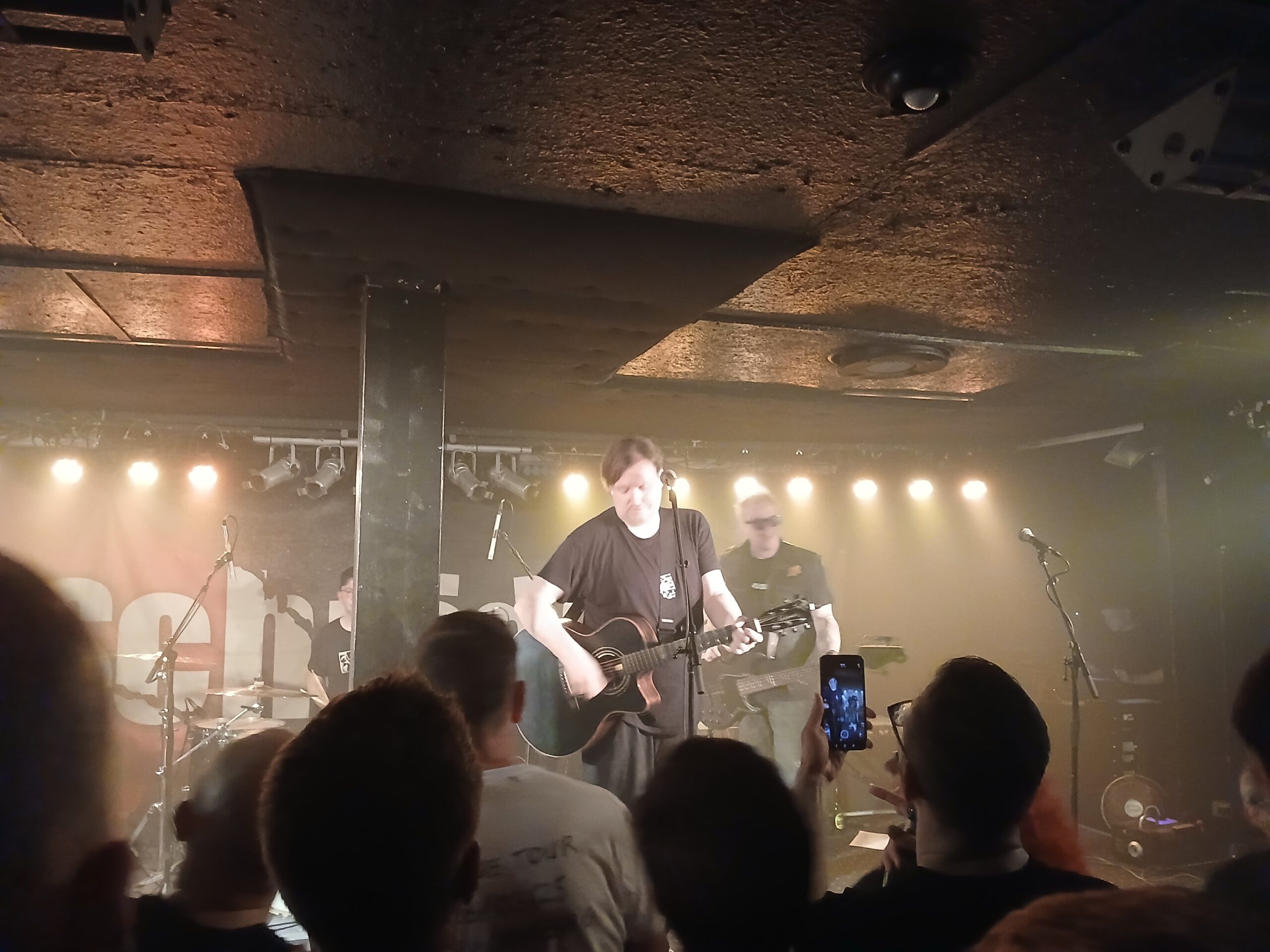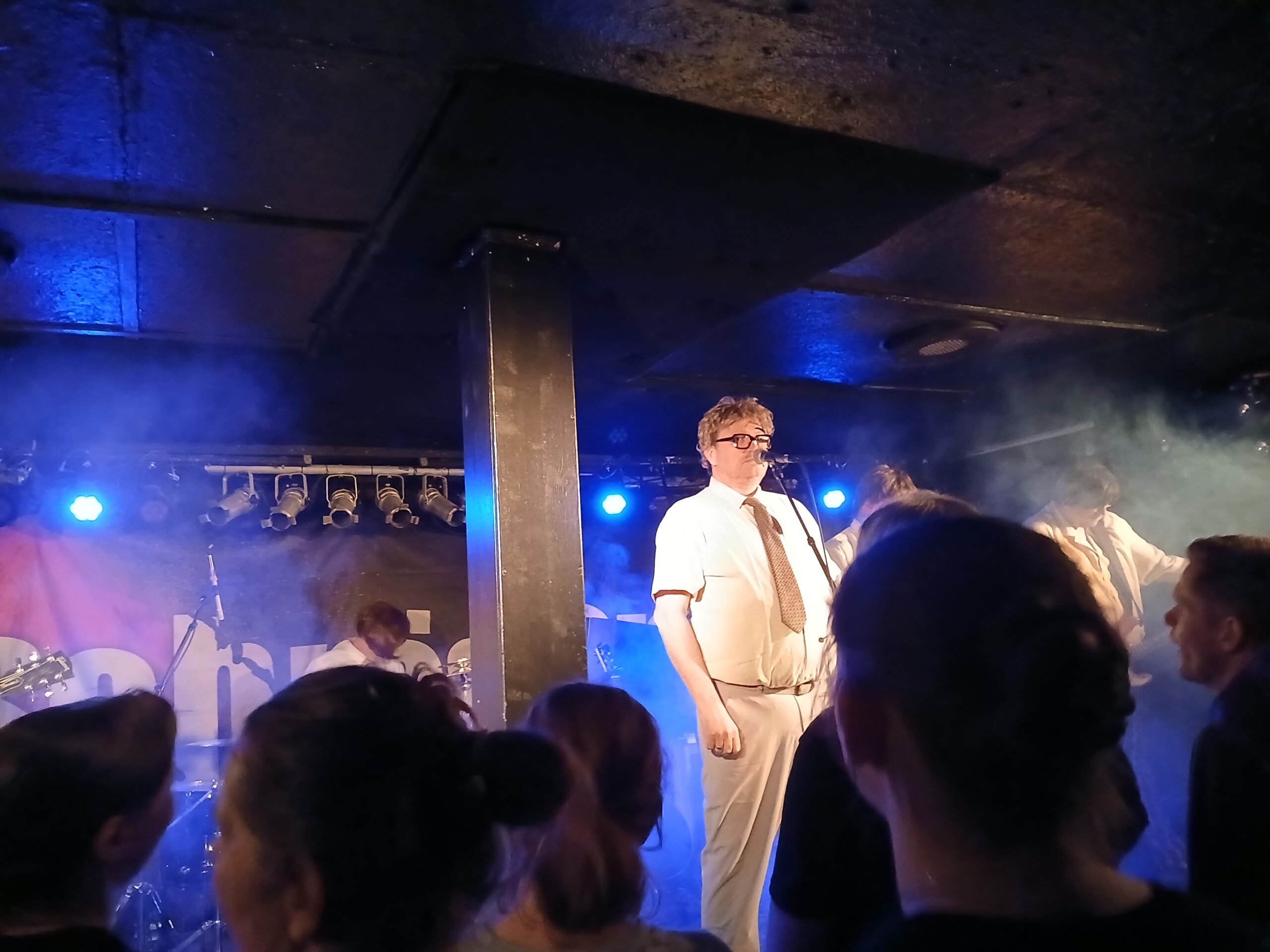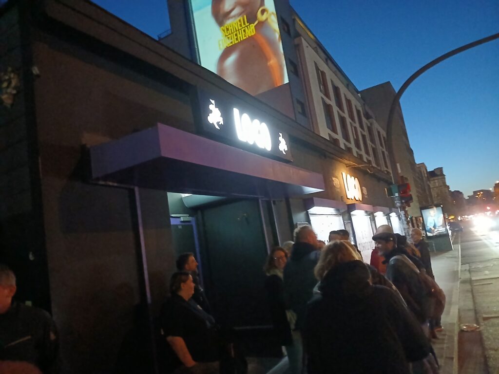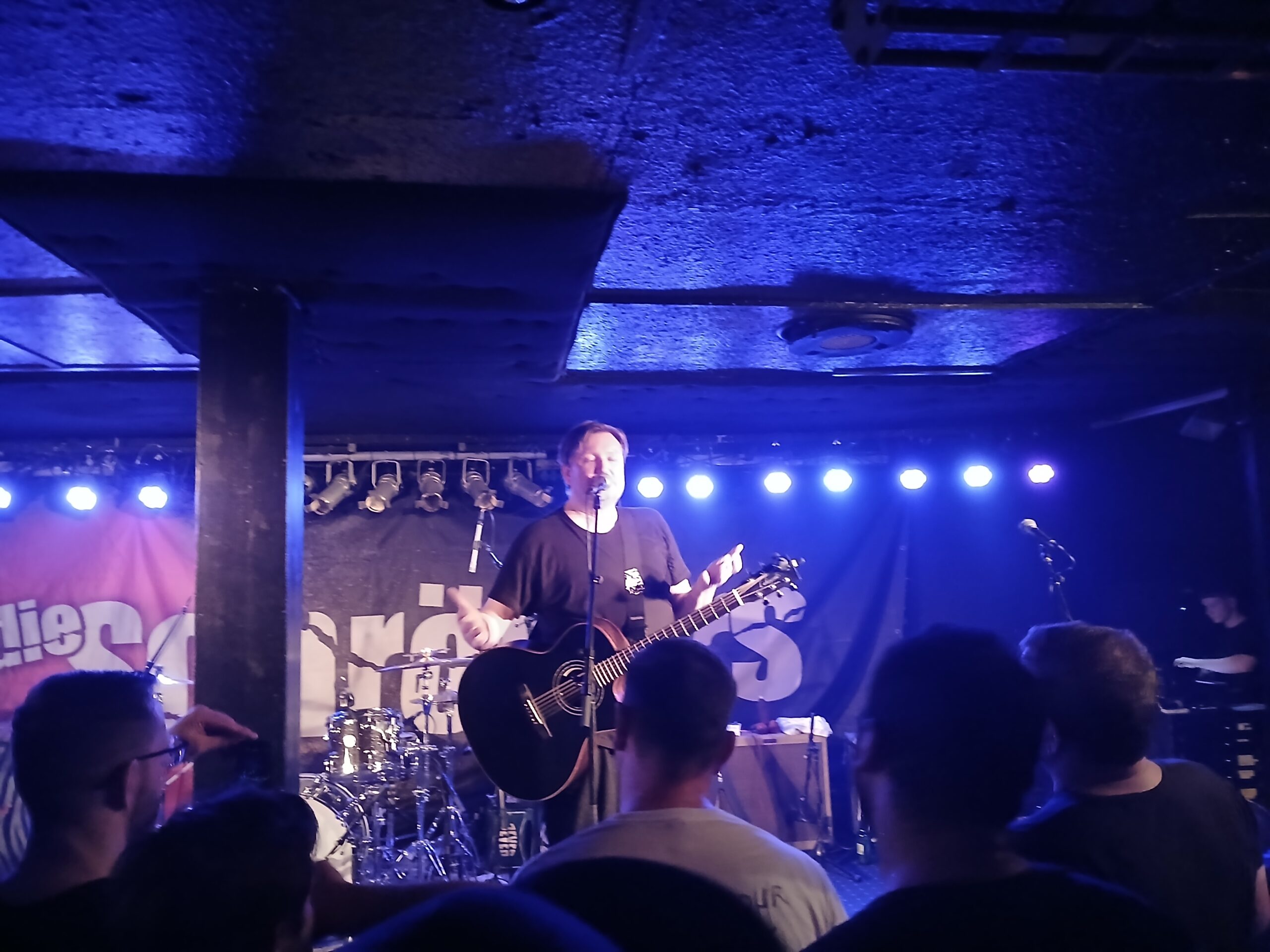 Es ist gar nicht so einfach, meine Liebe zu diesem Laden angemessen zu beschreiben. Ein Grund ist sicherlich das Personal. Stoffelig wie ich bin, kenne ich bis heute niemanden beim Namen und hab mich jetzt auch nie länger unterhalten mit den Leuten. Aber man kennt sich irgendwie trotzdem. Das Bedarf es gar nicht vieler Worte. Egal ob Garderobe oder Bar, jeder macht einen super Job. Das immer mit einem Lächeln und einem freundlichen Wort auf dem Lippen. In der Mitte der Bühne ist ein schon legendärer Pfeiler, der einfach Kult ist. Die Bühne ist nicht besonders hoch, hinten sieht man somit eher schlecht. Der Laden heizt sich super schnell auf und nicht umsonst nennen wir das Logo liebevoll „die heißeste Sauna von Hamburg“.