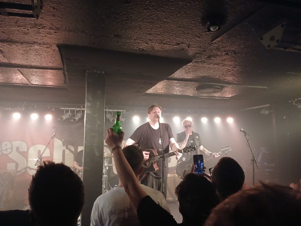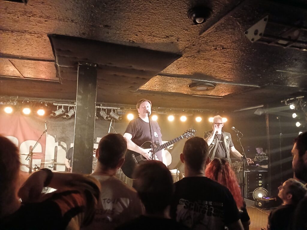 Mein emotionaler Höhepunkt ist an beiden Abenden die Cover Version des Hannes Waders Klassikers „Heute hier morgen dort„. Ein zeitloser Song, der auch im Punk Gewand wunderbar funktioniert. Zudem ein Text, der mich jedes mal wieder sehr berührt. Warum bin ich so geworden wie ich bin? Was möchte ich mit meinem Leben noch machen? Vielleicht nochmal was ganz anderes ? Vielleicht geht es mir auch richtig gut mit dem wie es zurzeit ist. Allerdings bleibt am Ende immer die Erkenntnis, dass „nichts bleibt wie es war“. Irgendwann sind wir und unsere Liebsten nicht mehr da. Solche Gedanken gehen mir an dieser Stelle durch den Kopf.
