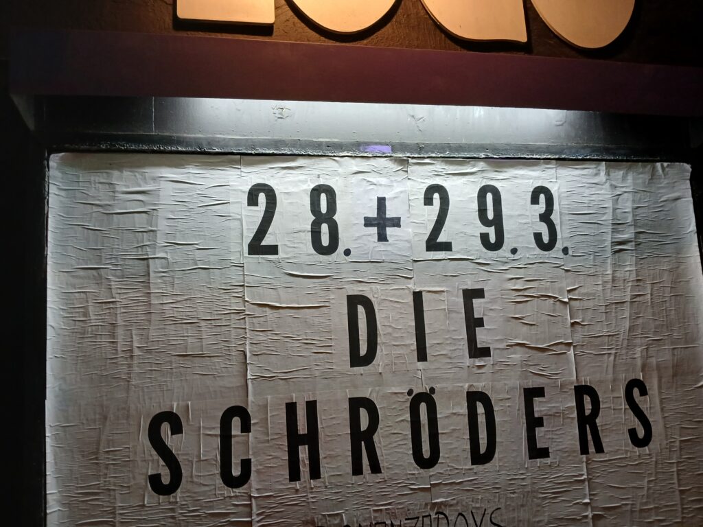 Bei meiner Recherche wird mir dann später klar, dass sich unter der biederen Uniform scheinbar die Mitglieder der Hauptband verborgen haben. Sprich die Schröders sind quasi ihre eigenen Vorband und das augenscheinlich schon seid einigen Jahren.