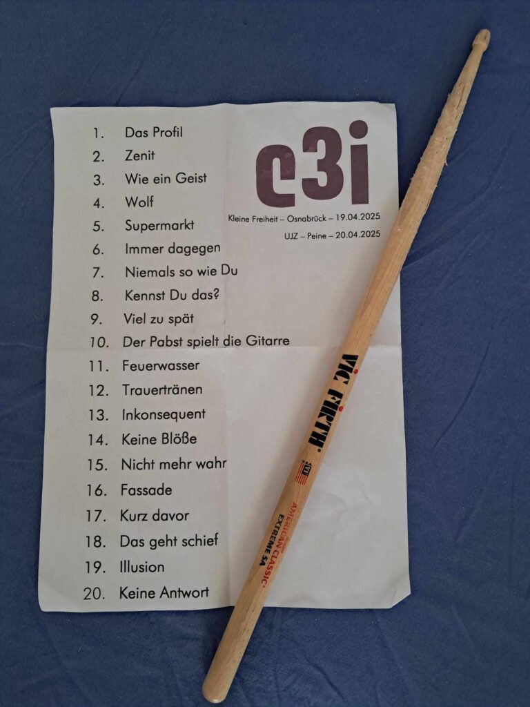 Der Laden füllte sich, man traf alte Freunde und Bekannte (und in meinem Fall auch Verwandte) oder machte neue und tauschte Anekdoten zu den Bands aus. Wie man irgendwann Mitte der 80er zum –emils-Konzert fuhr, in der festen Annahme, dass es sich dabei um –slime- handeln musste, die sich ja kurz vorher aufgelöst hatten. Und ob es sein kann, dass Torpedo Moskau damals wirklich nur diese eine Platte – und wie hieß sie gleich – rausgebracht haben? Und Bonusfrage: wer kann eigentlich den Bandnamen c3i erklären? Kleiner Tipp von mir: schaut mal auf den Ein-Dollarschein.