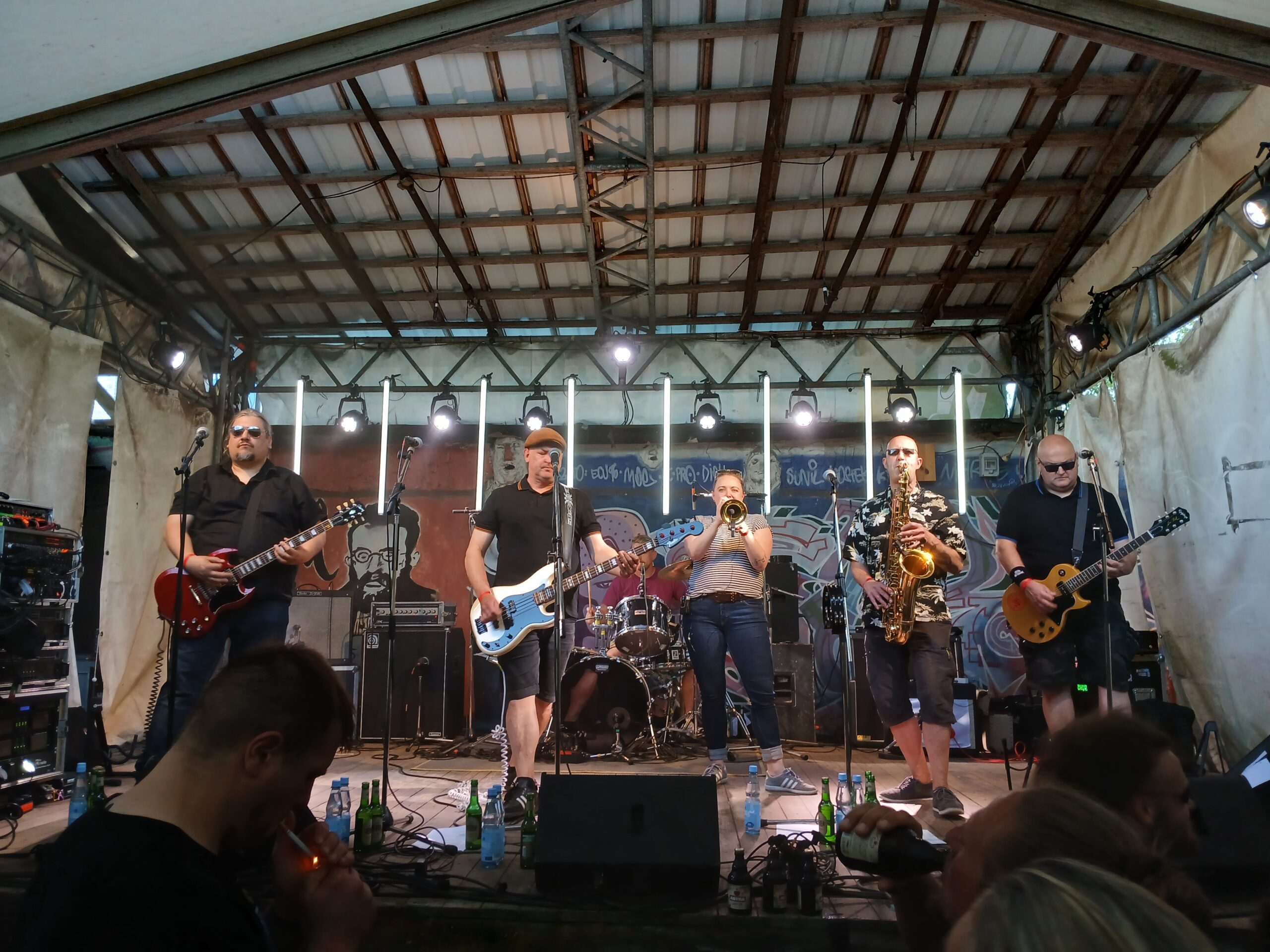 Ein Freund unsere Gruppe kennt die nächste Band und marschiert strammen Schrittes nach draußen zur Stadtgrabenbühne. Wir folgen ihm und sollten schon in wenigen Minuten erkennen, was für unterschiedlich Bands wir heute sehen werden.