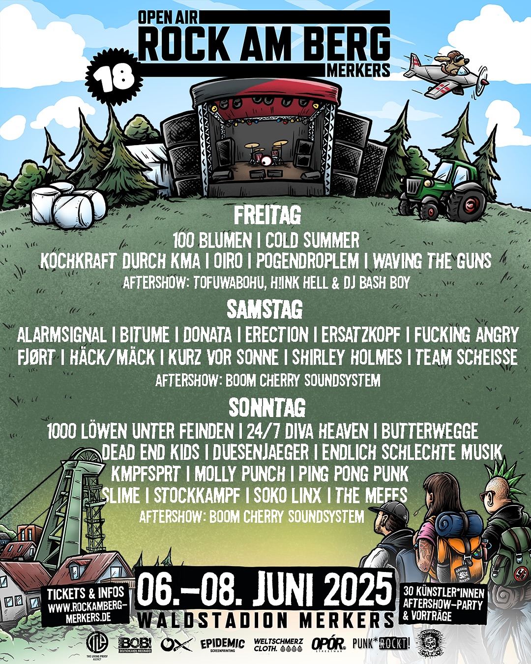Künstler: Team Scheisse, Slime, Alarmsignal, Pogendroblem, Kochkraft durch KMA , Dead End Kids, Soko Linx, Molly Punch, Stockkampf, The Dead End Kids, Fucking Angry, Endlich Schlechte Musik, Oiro, Butterwege, Erection, The Meffs uvm…