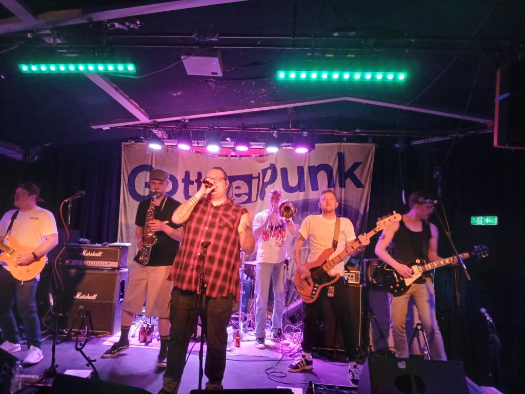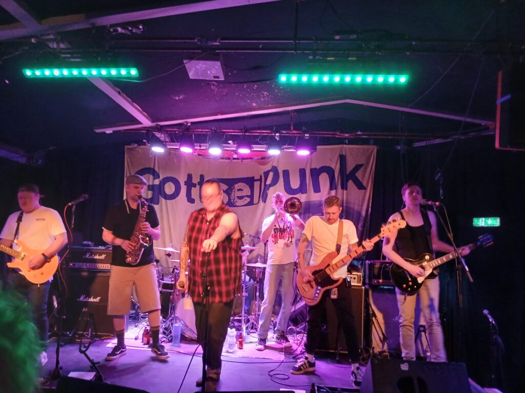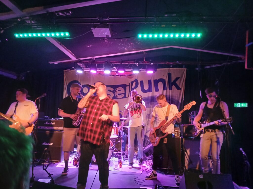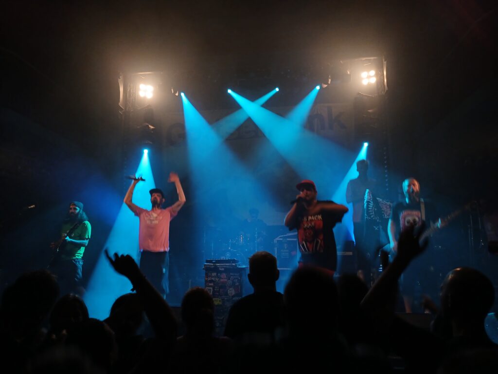 Beim nächsten Act wird es deutlich voller. Man merkt sofort, dass die Formation heute eine richtige Fan-Gemeinde dabei hat, die extra für diesen Auftritt gekommen sind . Le Fly spielen – laut eigener Aussage – St Pauli Tanzmusik aus Hamburg. Eine bunte Mischung von verschiedenen Stilen, aber die Ska-Trompete ist fast immer am Start. Der Sänger kann echt gut singen und noch besser rappen, ein starker Reggae-Einfluss ist ebenfalls dabei. Musik zum springen und tanzen, eher nicht zum Pogen.