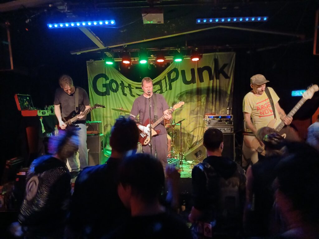 Jetzt gibt Claus Lüer zu sehen, der Sänger von der legendären Knochenfabrik. Heute ist er mit seiner anderen Band am Start. Er wirkt zwar nicht mehr ganz nüchtern, aber lange nicht so besoffen wie bei früheren Auftritten. Dafür werde ich gefühlt immer besoffener und kann mich an konkrete Songs aktuell leider nicht wirklich erinnern. Auf jeden Fall singt er an diesem Abend sauber und hat keine ersichtlichen Ausfallerscheinungen.