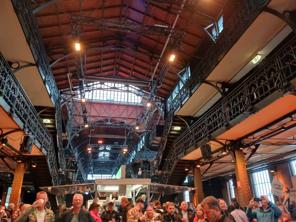 Aber siehe da, selbst die Kiosks auf St Pauli haben inzwischen zu und wir finden uns in der „Komet Bar“ wieder, ein gemütlicher Laden. Ich trinke 3 Schluck und mache dann scheinbar erstmal ein kleines Nickerchen. Als ich erwache, wollen die Jungs los zum Fischmarkt – es ist 6:33 Uhr. Wir verlassen den Laden und es schüttet wie aus Eimern. Aber mein Wiederstand ist zwecklos, ich werde mit in die Fischauktionshalle (Ein paar Meter hinter dem eigentlichen Fischmarkt gelegen) geschleppt. Hier ist die Hölle los.