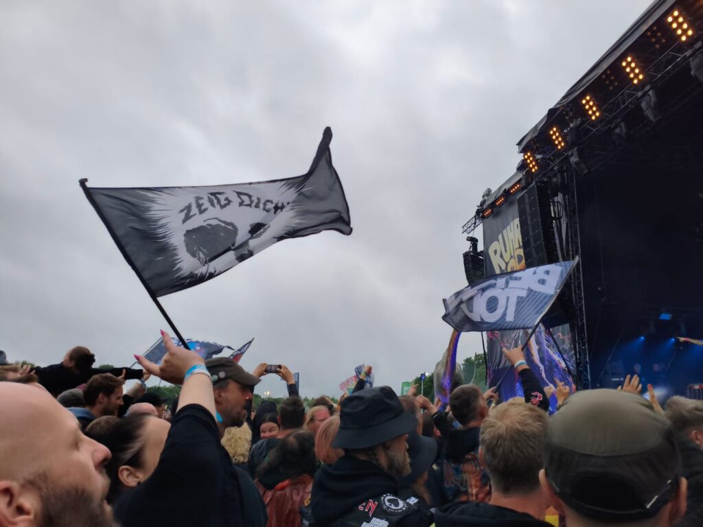 Der letzte Headliner an diesem Wochenende betritt die Ruhrpott Stage mit „Grauer Brei“ vom letzen Album „Nichts wird wieder gut“. Ich finde zwei tolle Menschen aus unserer Freunde des Punks Gruppe wieder und wir schauen das Konzert (singend und biertrinkend) aus sicherer Entfernung zusammen an.