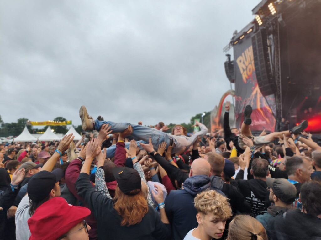 Ein letzter fetter Pit, Leute die sich in den Armen liegen, mitsingen, jeder schubst, hüpft und eskaliert nun noch mal endgültig. Stehen bleiben ist bei uns nicht mehr möglich und auch die Richtung kaum zu beeinflussen. Dann geht der Große erst mal auf der Crowd surfen, oder zwei oder dreimal? 😛 Zu Quadrat im Kreis hat uns dann auch der Jüngere noch gefunden, total verschwitzt und sichtlich erschöpft, singen wir fest umarmt den letzten Song mit und gehen anschließend mit einem dicken Grinsen erst mal viel, sehr viel Wasser besorgen.