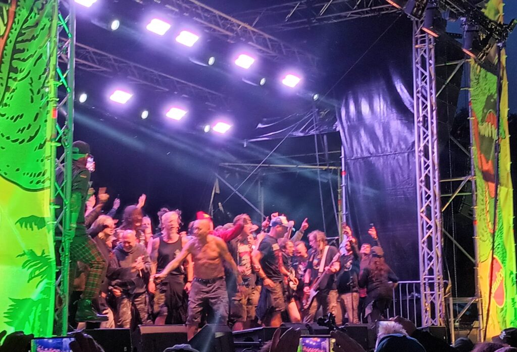 Sega: Der WIZO bildet für uns den Abschluss des Festivals. Während Sohn Zwei sich schon weit vor Beginn ganz vorne positioniert hat, gebe ich zum ersten Mal auf dem Festival meinen Alien-Rucksack in andere Hände und mach mich mit Sohn Eins auf in Richtung Mitte. Denn auch er will ganz vorne dabei sein und klar, bei der Band kann ich dann auch nicht nein sagen 😉 Die Crowd wartet schon ungeduldig, denn bei The Exploited geht noch richtig Party auf der Bühne. Die ersten WIZO-Songs werden angestimmt und wir holen die letzten Töne aus uns raus. Nach drei Tagen Festival ist da dann aber nicht mehr viel Kraft und die Stimmbänder krächzen nur noch. Egal, denn dann kommt die Combo auf die Bühne und es „explodiert“ in alle Richtungen.