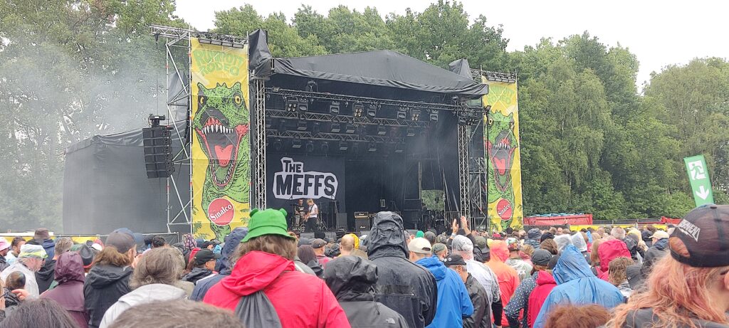 Sega: The Meffs verfolge ich auch schon länger. Was „nur“ zwei Leute auf der Bühne zu Stande bringen können ist absolut faszinierend. Man hat nie das Gefühl, dass weitere Instrumente nötig wären. Schneller, aggressiver Punkrock ohne Kompromisse. Ja stimmt, die Leute waren alle schon ziemlich durch, aber auf den Bildern kann man doch ganz gut erkennen, dass sie ein recht großes Publikum angelockt haben.