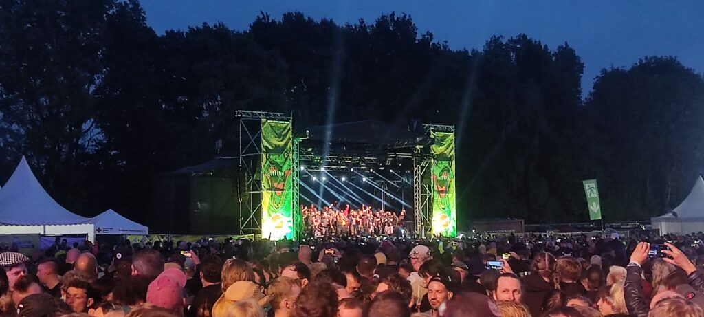 Als allerletzte Band des Festivals spielt eine italienische Ska-Punk Band auf der Rodeo Stage. Gegründet bereits 1994, versuchen sie, dem verbliebenen Publikum noch einmal einzuheizen. Klappt ganz gut. Erstaunlich viele Leute stehen noch vor der Bühne und tanzen entspannt mit. Die Songs sind auf englisch und italienisch; die Trompete sehr dominant. Man könnte fast auf die Idee kommen, dass „Sondaschule“ diese Band in ihren jungen Jahren als Inspirationsquelle für sich entdeckt hat. Der Sound ist den Klängen der „Brüder“ aus Mülheim an der Ruhr durchaus ähnlich. Mehr kann ich zu der Band nicht mehr berichten.
