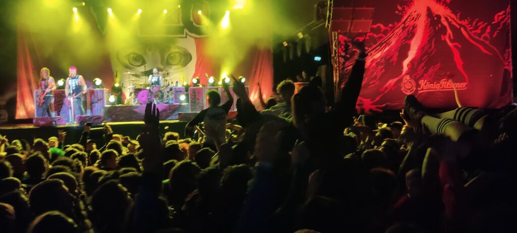 Klare Kante gegen Rechts wird im weiteren Verlauf mit Songs wie „Antifa“ und „Ganz klar gegen Nazis“ gezeigt. Das Publikum gibt nochmal alles und ich bin ganz froh, grade mal den „Pogo Gang“ zurückgefahren zu haben. Man will sich ja auch nicht am letzten Abend noch was brechen. „Hey Thomas“ darf natürlich auch nicht fehlen. Was da erzählt wird, kann jeder fühlen, der einen geliebten Menschen verloren hat. Heute Abend berührt der Song mich doppelt, weil ich einfach nur fix und fertig bin. Da ist man emotional ja manchmal noch etwas „verfügbarer“ als sonst.