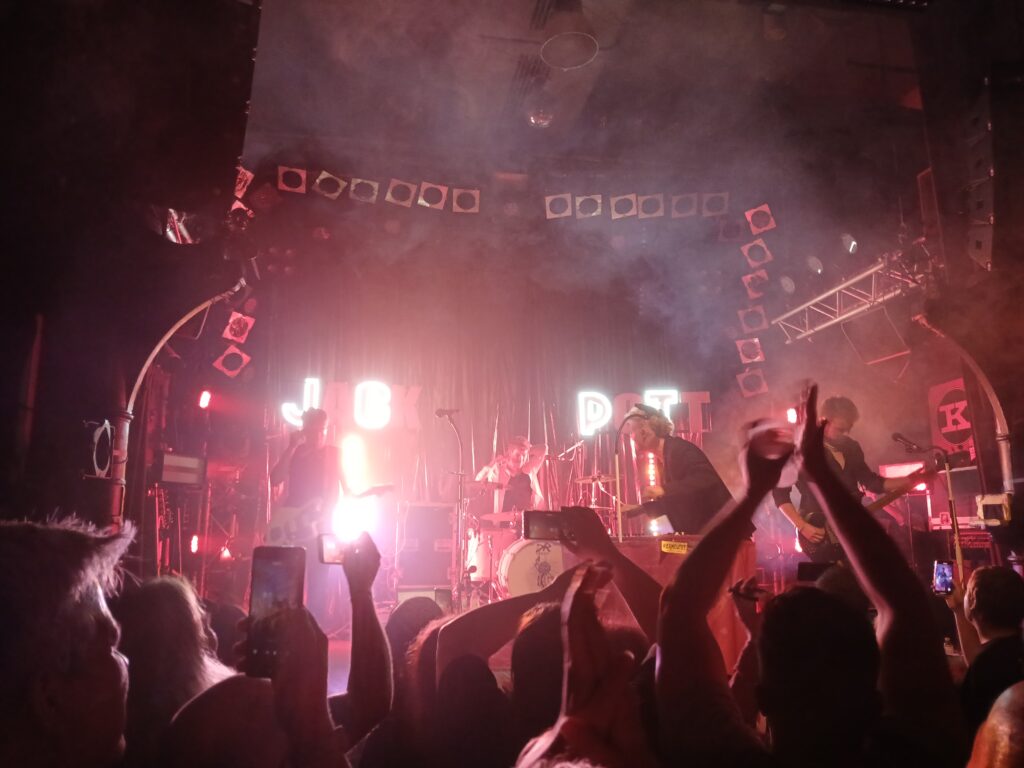Jack Pott sind eine noch immer junge und frische Band mit – in meinen Augen – riesigem Potenzial nach oben. Ende letzten Jahres haben sie zum ersten Mal die Kulturwerft Gollan in Lübeck mit mehreren 1000 Leuten voll gemacht. In den Jahren davor hatten sie mehrere ausverkaufte Konzerte im Lübecker Treibsand. Heute zum ersten Mal ein ausverkauftes Knust = Größtes Hamburg-Konzert bisher.