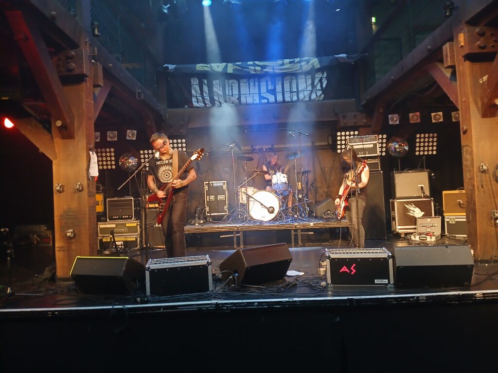 Es geht los mit der neuen Band vom ehemaligen COR Sänger Friedemann. Schwer tätowiert im Gesicht und ausgestattet mit einer scheinbar unbändigen Wut. Mit Steffi am Bass (sowie teilweise Gesang) und Arthur an den Drums fackelt die Combo die nächsten 30 Minuten ein Feuerwerk ab. Anklagend, direkt und nach vorne gehend. Deutscher Hardcore vom Feinsten. Es geht u.a. um die Sinnlosigkeit von Krieg und über diejenigen, die davon profitieren.