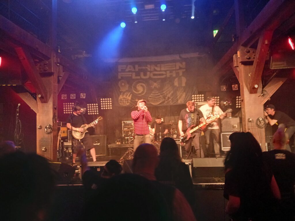 Zum Abschluss kriegen wir politischen Deutschpunk aus Celle auf die Ohren. Der Name war mir schon ein Begriff. Allerdings muss ich gestehen, dass ich ihre Songs vor ein paar Tagen zum ersten Mal angehört habe.
