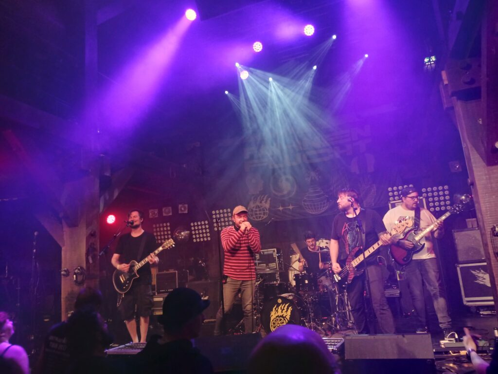 Die Band wirkt sehr eingespielt und sie sind mit viel Herz bei der Sache. „Ich hoffe du findest was du suchst“ ist vielleicht der Song, der mich am heutige Abend am meisten berührt. Ein Lied über Mental Health und den manchmal schweren Weg aus Zeiten, in denen einem alles nur scheiße und grau erscheint. Im Original mit Gunnar von Dritte Wahl, es gibt dazu auch ein schönes Video.