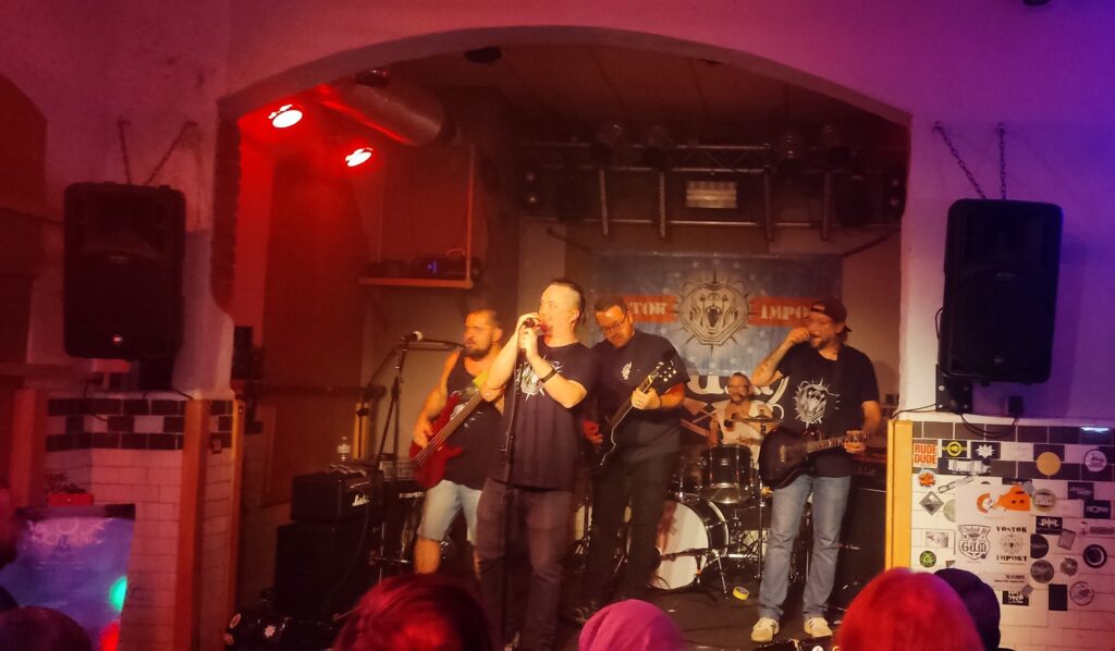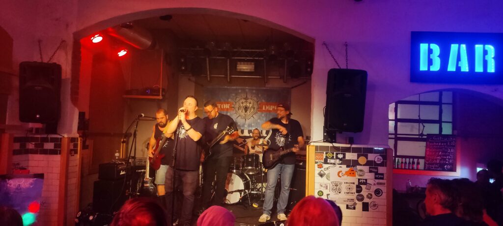 Die vier Herren von Vostok Import sind auf der Bühne und haben von Beginn an sichtlich Spaß. Schon direkt beim ersten Song fangen die Köpfe im Publikum an, im Takt der Musik zu wackeln, hier und da schwingt auch schon eine Hüfte. Man merkt sofort, dass die Combo ihr musikalisches Handwerk versteht und die Stimme von Sergej ist live noch kräftiger und tiefer als auf der Platte.