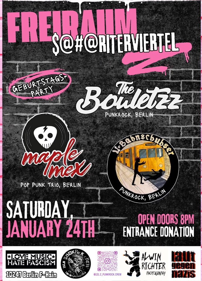 Folgende Künstler erwarten euch: The Bouletzz, Maple Max, U-Bahnschubser.