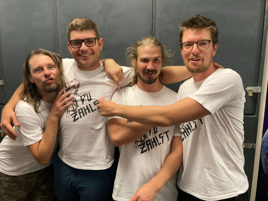 Was will man eigentlich mehr? Richtig – ein Livealbum! „selber schuld!“ haben sie im August 2025 herausgebracht, aufgenommen im Rockhouse Salzburg. FdP: Erzählt mir doch etwas über Euer aktuelles Album. du zahlst: Das Livealbum ist entstanden, weil wir live gespielt haben. Nicht so wie Kiss oder Mötley Crüe. Wir sind keine Poser, sondern nehmen das, was wir machen, sehr, sehr ernst. Und außerdem hat Max auf Aufnahme gedrückt.