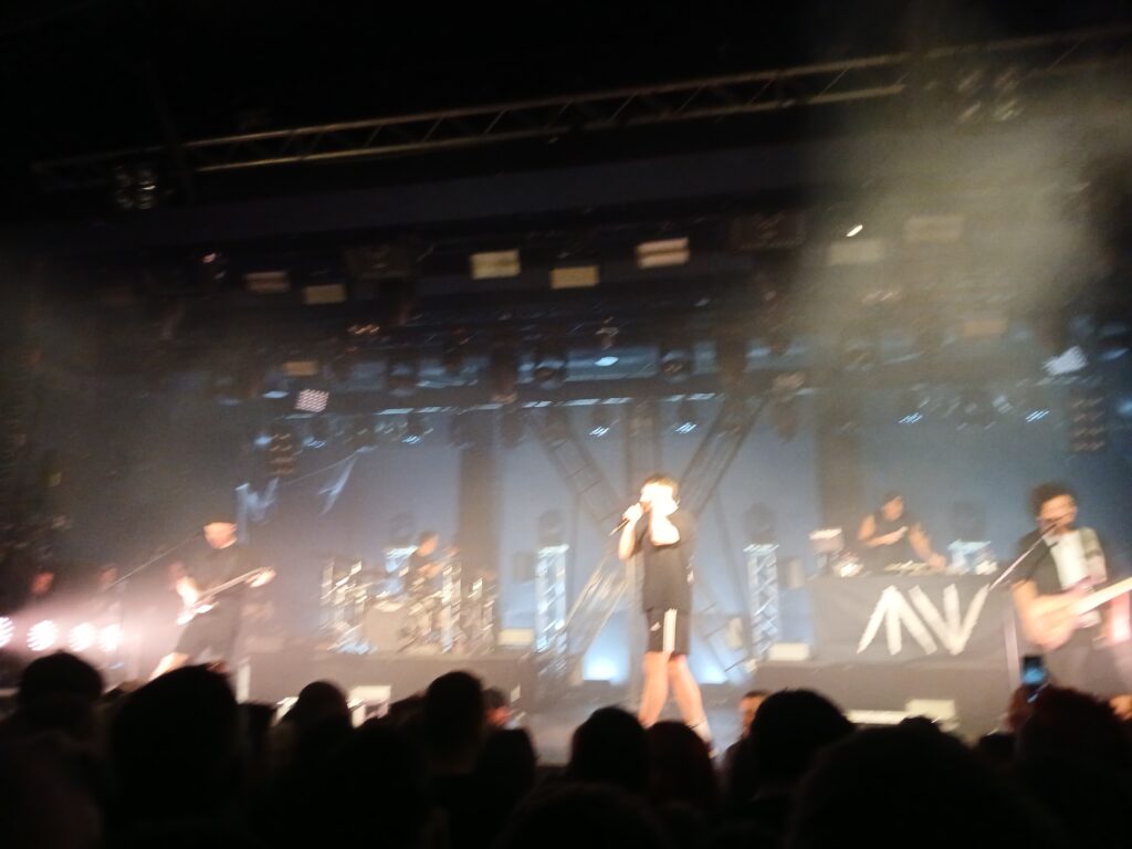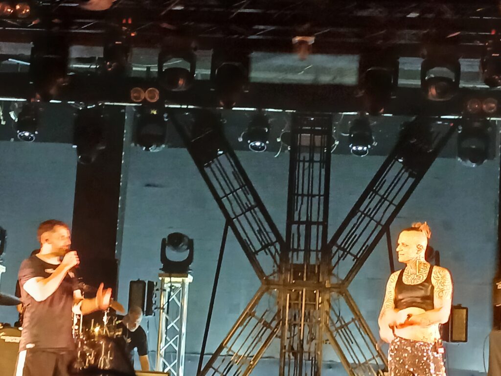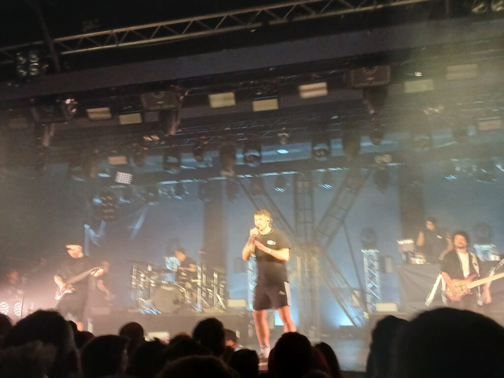 Zum ersten Mal emotional wird es mit Sehnsucht gefolgt von Ficken bis der Frieden kommt. Beide Lieder vom neuen Album liefern eine willkommene Pogo-Pause und statt dessen setzen wir uns beim ersten Song alle hin. Ein Paradebeispiel für einen Swiss und die Andern „Mental Health“ Song. Sehr melancholisch, dennoch fühlt man sich in den Arm genommen und wenn der Song vorbei ist, geht es einem etwas besser. Wie Swiss sagen würde: „Ein Pflaster für die Seele“ und das „zusammen singen“ macht es noch einmal schöner. Der zweite Song handelt von der absolut aktuellen Sorge davor, als junger Mensch bald in den Krieg ziehen zu müssen. Er steht für eine absolute Verweigerung für sein Land zu sterben, für einen Kampf der nicht der unsere ist. Damit spricht er nicht nur mir aus der Seele. Das Publikum ist im Schnitt ziemlich jung, sicherlich auch mit einigen Menschen, die bald zur Musterung müssen. Allerdings beichtet uns Swiss, dass seine Mutter den Song sprachlich etwas obszön findet. Was auch immer sie damit meinen mag 😉