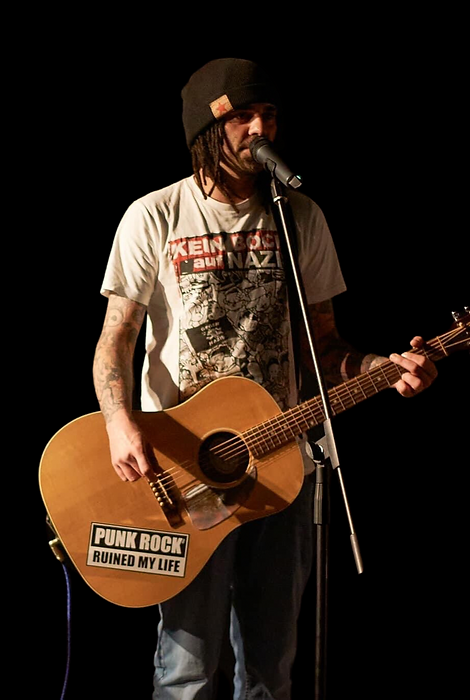 Mit Akustikgitarre und charmant großer Fresse zieht Dan Ganove als „allerletzter Punk“ durch diese kaputte Welt.