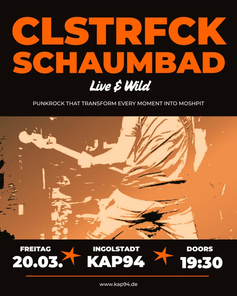 Die Punkrock-Band aus Nürnberg, liefert das volle Programm für Bauch, Beine, Kopf. Westcoast-Skatepunk ist der Nährboden der deutschsprachigen Songs. Das Herz schlägt links, für Ohrwurm-Melodien, mehrstimmige Harmonien und eine bessere Welt für alle. Ingo “Donot” Knollmann hat die Band bereits zweimal in der DONOTS ROCKSHOW auf Radio BOB! gespielt und sagt über CLSTRFCK: “Geheimtipp! CLSTRFCK spielen wirklich schönen Deutschpunk. Sehr clever und ein bisschen anders im Ansatz. Reinhören! ”