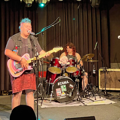 Mich interessiert ja brennend – was ist Lowpunk? Dazu später mehr. Erstmal Rückblick ins Jahr 2023. Oksana und Paul spielen zusammen in der Schulband. Punkrock begleitet sie schon das ganze Leben, sie sind damit aufgewachsen. Kurz vor Schulende war klar: Nur hören reicht nicht, also selber machen.