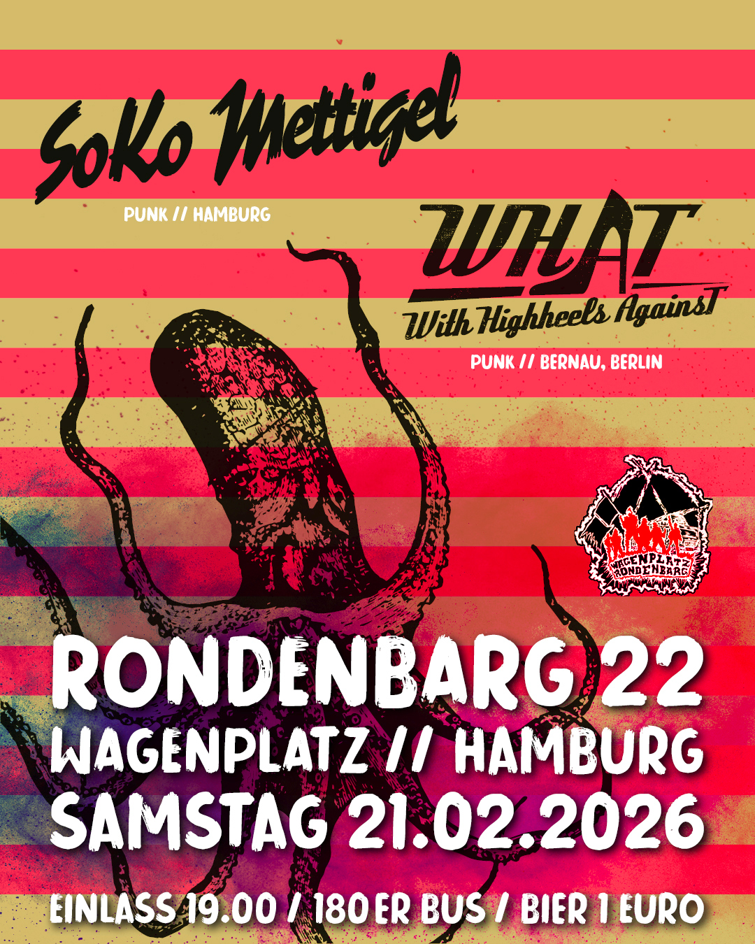 Nächsten Samstag hätte das Konzert mit Soko Mettigel und Geliefert im Bagehl in Rostock stattfinden sollen. Wegen des Brandanschlags auf das Bagehl wird das Konzert umverlegt und im JAZ e.V. Rostock stattfinden. Zusätzlich wird Carls8erg auftreten.