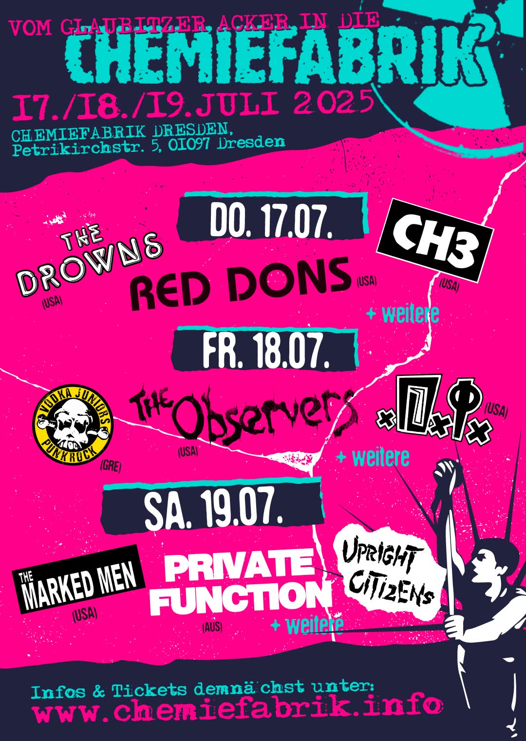 Über weitere Bands und Infos zum Vorverkauf werdet ihr über die Kanäle der Chemiefabrik Dresden und des BTF auf dem Laufenden gehalten.